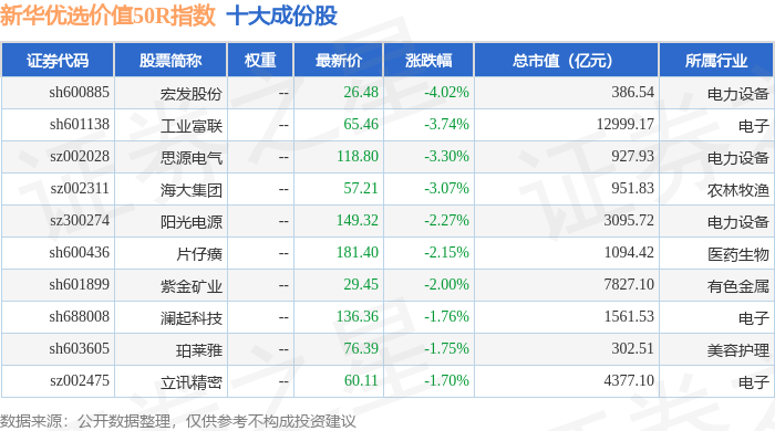 新华优选价值50R(489004)指数十大成份股详情如下: