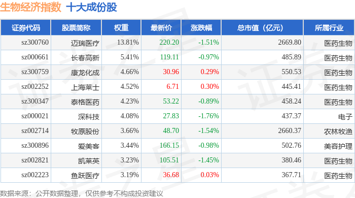 证券之星消息,10月22日,生物经济(970038)指数报收于2261.4点,跌0.81%,成交166.35亿元,换手率1.19%。当日该指数成份股中,上涨的有19家,美好医疗以6.53%的涨幅领涨,下跌的有30家,普洛药业以5.41%的跌幅领跌。