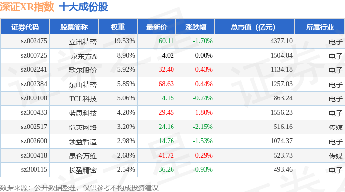 深证XR(970046)指数十大成份股详情如下:
