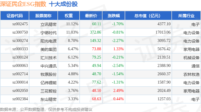 深证民企ESG(970056)指数十大成份股详情如下: