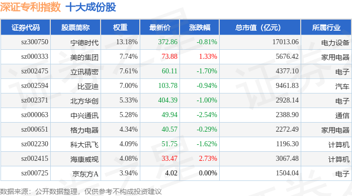证券之星消息,10月22日,深证专利(970067)指数报收于4918.16点,跌0.37%,成交756.23亿元,换手率1.26%。当日该指数成份股中,上涨的有19家,海康威视以2.73%的涨幅领涨,下跌的有28家,英威腾以5.9%的跌幅领跌。