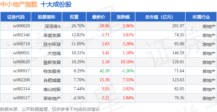 中小地产(971002)指数十大成份股详情如下:
