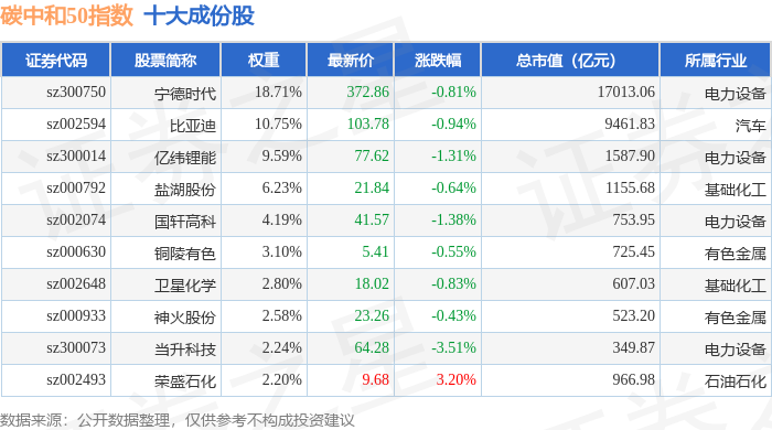 证券之星消息,10月22日,碳中和50(980021)指数报收于2181.97点,跌0.84%,成交342.39亿元,换手率0.93%。当日该指数成份股中,上涨的有10家,荣盛石化以3.2%的涨幅领涨,下跌的有37家,多氟多以6.52%的跌幅领跌。