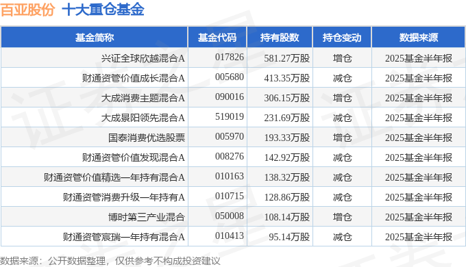 持有百亚股份最多的基金为兴证全球欣越混合A,目前规模为26.65亿元,最新净值1.2009(10月22日),较上一交易日下跌0.12%,近一年上涨11.11%。该基金现任基金经理为童兰。