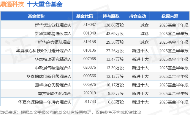 重仓鼎通科技的前十大公募基金请见下表: