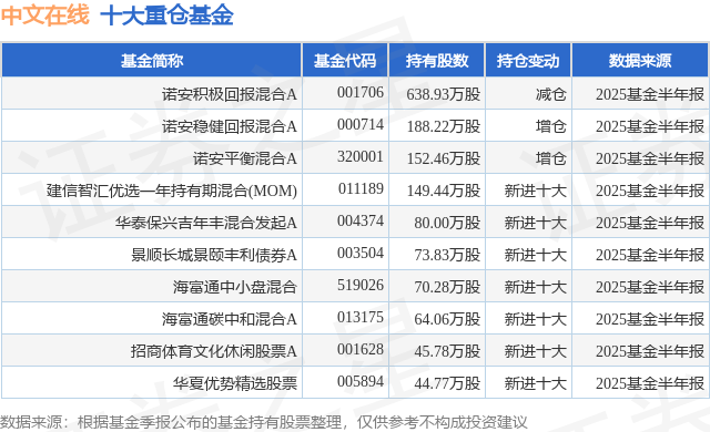 重仓中文在线的前十大公募基金请见下表:
