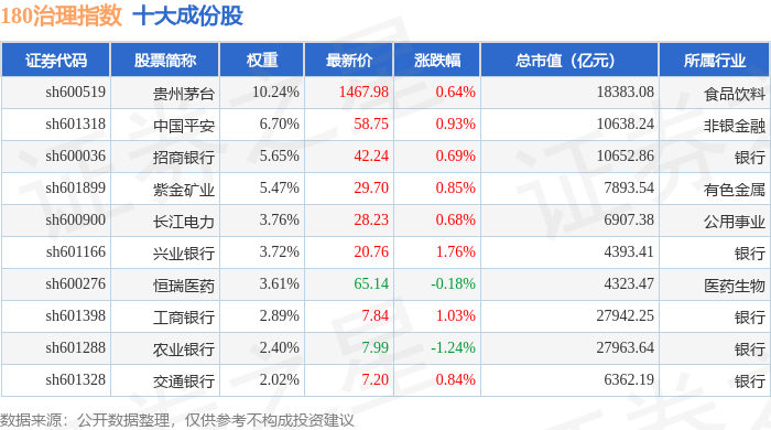证券之星消息,10月23日,180治理(000021)指数报收于1073.01点,涨0.51%,成交1022.95亿元,换手率0.36%。当日该指数成份股中,上涨的有73家,福耀玻璃以3.26%的涨幅领涨,下跌的有24家,生益科技以4.87%的跌幅领跌。