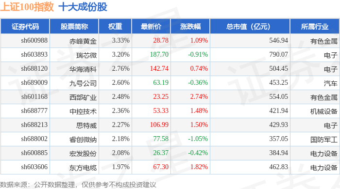 证券之星消息,10月23日,上证100(000132)指数报收于5922.5点,涨0.11%,成交321.09亿元,换手率1.22%。当日该指数成份股中,上涨的有57家,长白山以6.3%的涨幅领涨,下跌的有43家,特宝生物以6.07%的跌幅领跌。