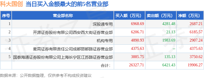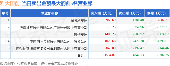 证券之星消息,沪深交易所2025年10月23日公布的交易公开信息显示,科大国创(300520)因日涨幅达到15%的前5只证券登上龙虎榜。此次是近5个交易日内第1次上榜。