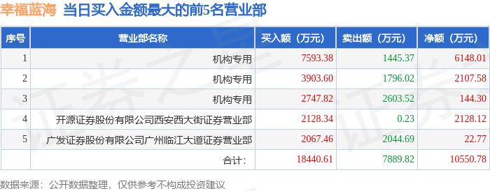 证券之星消息,沪深交易所2025年10月23日公布的交易公开信息显示,幸福蓝海(300528)因日涨幅达到15%的前5只证券登上龙虎榜。此次是近5个交易日内第1次上榜。
