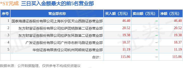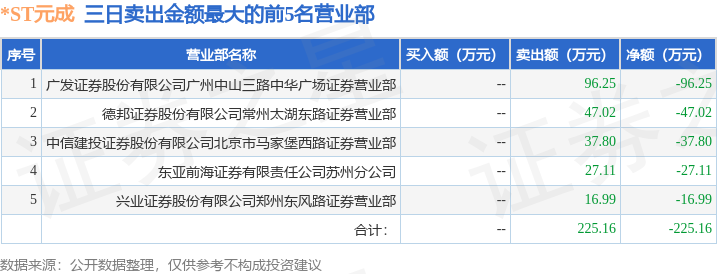 证券之星消息,沪深交易所2025年10月23日公布的交易公开信息显示,*ST元成(603388)因ST、*ST证券连续三个交易日内收盘价格跌幅偏离值累计达到12%的证券登上龙虎榜。此次是近5个交易日内第2次上榜。