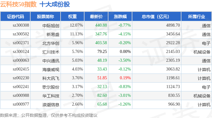 证券之星消息,10月23日,云科技50(399279)指数报收于4680.79点,跌0.9%,成交909.39亿元,换手率2.24%。当日该指数成份股中,上涨的有24家,指南针以2.79%的涨幅领涨,下跌的有24家,新易盛以4.15%的跌幅领跌。