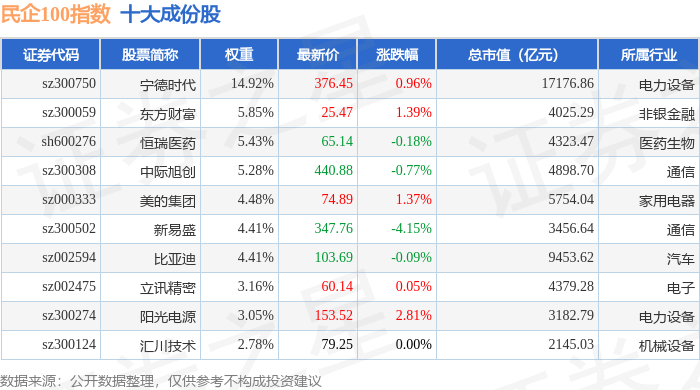 资金流向方面,民企100(399362)指数成份股当日主力资金净流出合计43.55亿元,游资资金净流入合计3.97亿元,散户资金净流入合计39.58亿元。成份股资金流向详情见下表: