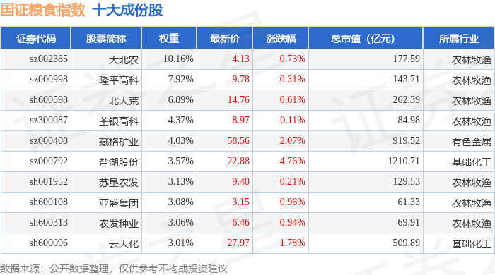 资金流向方面,国证粮食(399365)指数成份股当日主力资金净流入合计7131.42万元,游资资金净流出合计944.92万元,散户资金净流出合计6186.5万元。成份股资金流向详情见下表:
