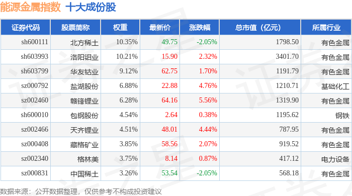 证券之星消息,10月23日,能源金属(399366)指数报收于2434.64点,涨1.32%,成交558.23亿元,换手率2.88%。当日该指数成份股中,上涨的有21家,盛新锂能以10.03%的涨幅领涨,下跌的有27家,新莱福以6.95%的跌幅领跌。