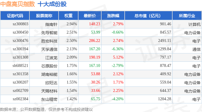 证券之星消息,10月23日,中盘高贝(399407)指数报收于3006.04点,涨0.22%,成交1211.54亿元,换手率1.89%。当日该指数成份股中,上涨的有59家,江波龙以5.12%的涨幅领涨,下跌的有41家,天孚通信以6.36%的跌幅领跌。