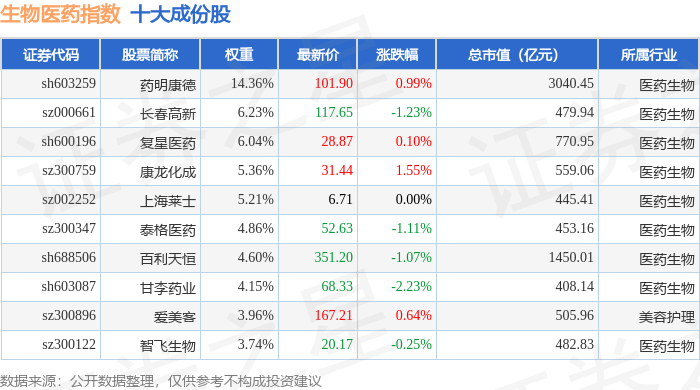 证券之星消息,10月23日,生物医药(399441)指数报收于2347.71点,跌0.75%,成交116.94亿元,换手率0.96%。当日该指数成份股中,上涨的有9家,康龙化成以1.55%的涨幅领涨,下跌的有20家,荣昌生物以8.31%的跌幅领跌。