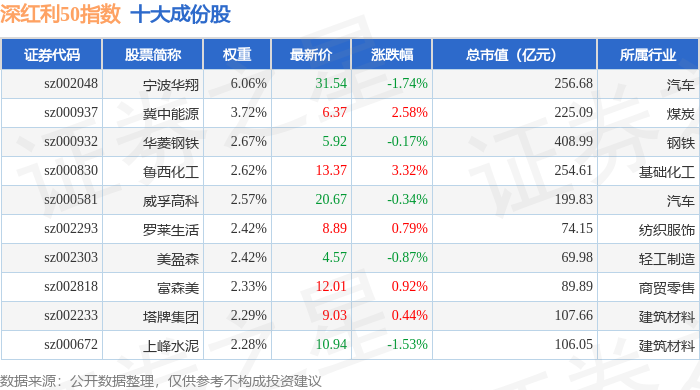 证券之星消息,10月23日,深红利50(399672)指数报收于4226.69点,涨0.56%,成交157.66亿元,换手率1.96%。当日该指数成份股中,上涨的有28家,天健集团以9.89%的涨幅领涨,下跌的有21家,兔宝宝以4.09%的跌幅领跌。