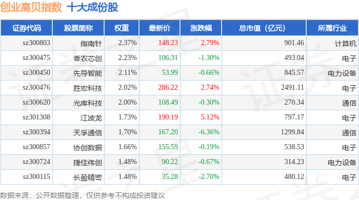 证券之星消息,10月23日,创业高贝(399694)指数报收于3935.41点,涨0.44%,成交976.55亿元,换手率2.68%。当日该指数成份股中,上涨的有58家,迪普科技以14.86%的涨幅领涨,下跌的有42家,天孚通信以6.36%的跌幅领跌。