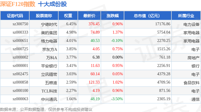 证券之星消息,10月23日,深证F120(399702)指数报收于7594.38点,涨0.74%,成交1417.11亿元,换手率1.07%。当日该指数成份股中,上涨的有80家,深圳能源以9.96%的涨幅领涨,下跌的有36家,中材科技以6.01%的跌幅领跌。