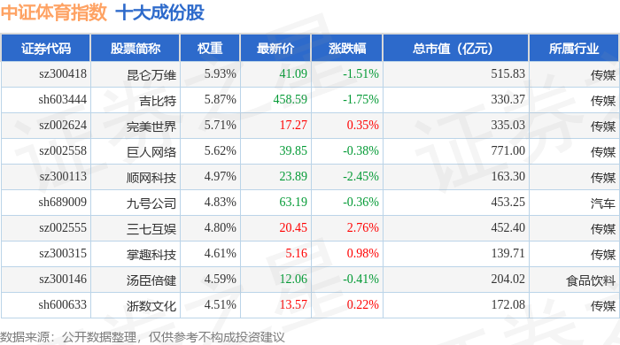 资金流向方面,中证体育(399804)指数成份股当日主力资金净流出合计3.44亿元,游资资金净流入合计1.09亿元,散户资金净流入合计2.35亿元。成份股资金流向详情见下表: