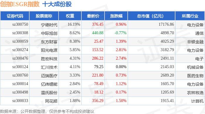 资金流向方面,创指ESGR(470028)指数成份股当日主力资金净流出合计14.29亿元,游资资金净流出合计1.73亿元,散户资金净流入合计16.01亿元。成份股资金流向详情见下表: