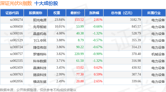 深证光伏R(470035)指数十大成份股详情如下: