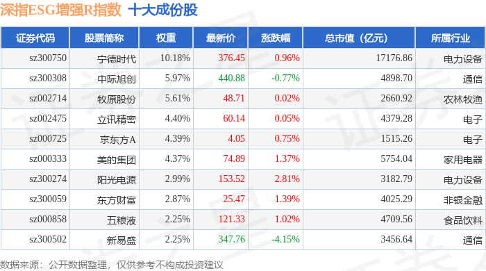 深指ESG增强R(470032)指数十大成份股详情如下: