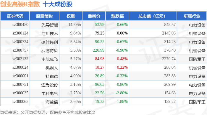 证券之星消息,10月23日,创业高装R(470040)指数报收于4247.14点,跌0.39%,成交183.67亿元,换手率2.8%。当日该指数成份股中,上涨的有21家,赛摩智能以2.66%的涨幅领涨,下跌的有27家,蓝英装备以3.4%的跌幅领跌。