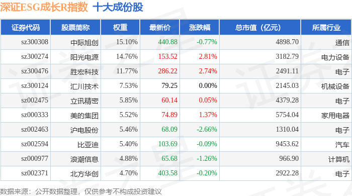 深证ESG成长R(470060)指数十大成份股详情如下:
