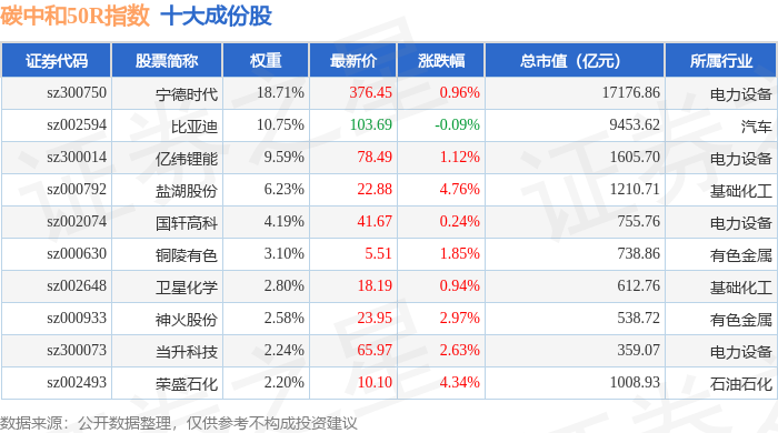 碳中和50R(480021)指数十大成份股详情如下: