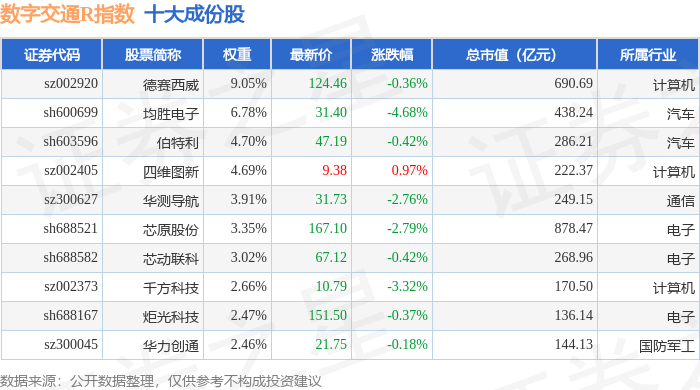 数字交通R(480075)指数十大成份股详情如下: