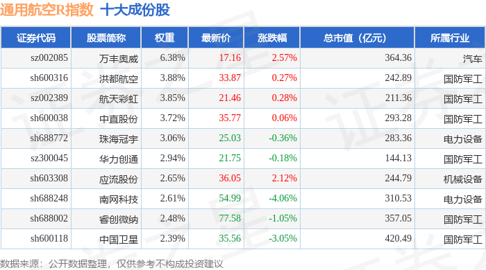 通用航空R(480076)指数十大成份股详情如下: