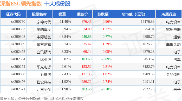 资金流向方面,深指ESG领先(970029)指数成份股当日主力资金净流出合计38.8亿元,游资资金净流出合计2.26亿元,散户资金净流入合计41.06亿元。成份股资金流向详情见下表: