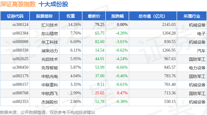 深证高装(970037)指数十大成份股详情如下: