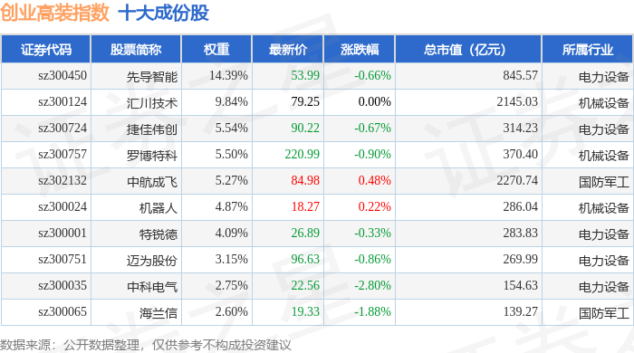 证券之星消息,10月23日,创业高装(970040)指数报收于3972.02点,跌0.39%,成交183.67亿元,换手率2.8%。当日该指数成份股中,上涨的有21家,赛摩智能以2.66%的涨幅领涨,下跌的有27家,蓝英装备以3.4%的跌幅领跌。