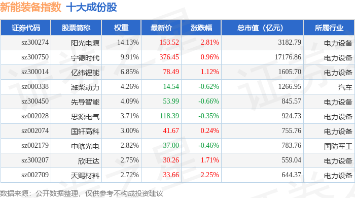 资金流向方面,新能装备(970043)指数成份股当日主力资金净流出合计5.76亿元,游资资金净流出合计1.66亿元,散户资金净流入合计7.42亿元。成份股资金流向详情见下表: