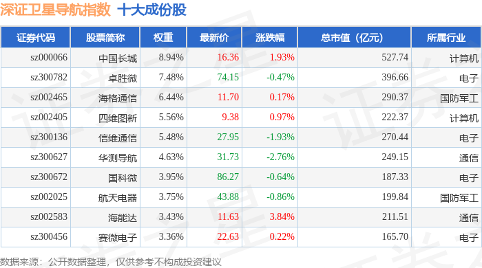 深证卫星导航(970050)指数十大成份股详情如下: