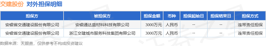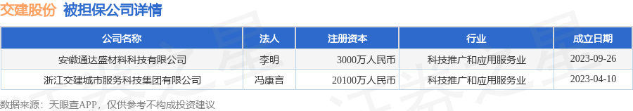 交建股份10月15日披露2笔对外担保,被担保公司2家。对外担保明细如下表: