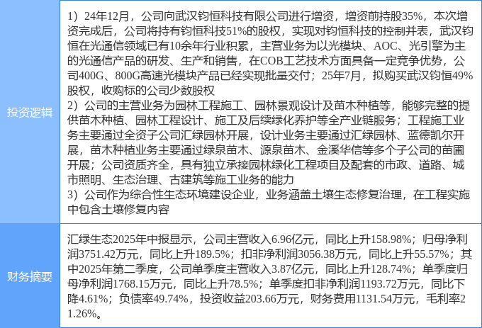 该股为光通信,园林,土壤修复概念热股,当日光通信概念上涨3.23%,园林概念上涨0.7%,土壤修复概念上涨0.26%。