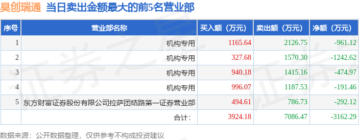 从龙虎榜公布的当日买卖数据来看,机构合计净卖出2870.17万元。