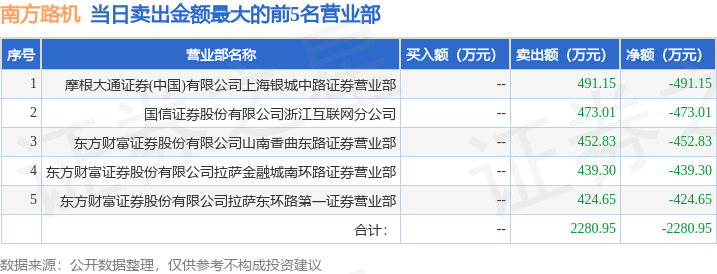 证券之星消息,沪深交易所2025年10月24日公布的交易公开信息显示,南方路机(603280)因有价格涨跌幅限制的日换手率达到20%的前五只证券登上龙虎榜。此次是近5个交易日内第3次上榜。