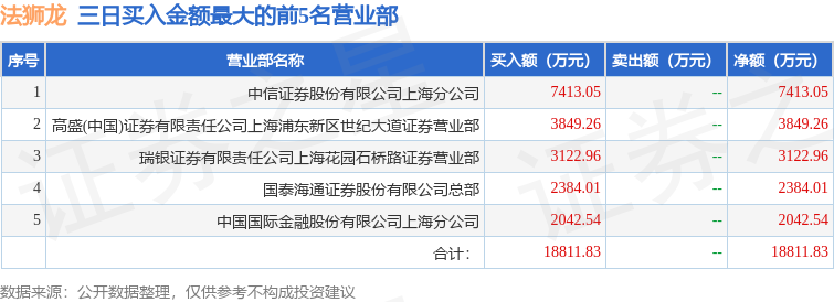 证券之星消息,沪深交易所2025年10月24日公布的交易公开信息显示,法狮龙(605318)因非ST、*ST和S证券连续三个交易日内收盘价格涨幅偏离值累计达到20%的证券登上龙虎榜。此次是近5个交易日内第2次上榜。
