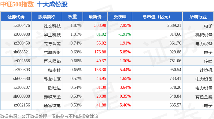中证500(000905)指数十大成份股详情如下: