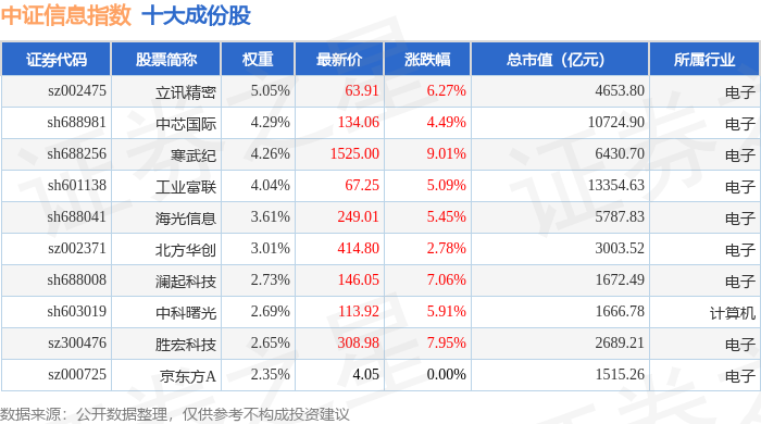 中证信息(000935)指数十大成份股详情如下: