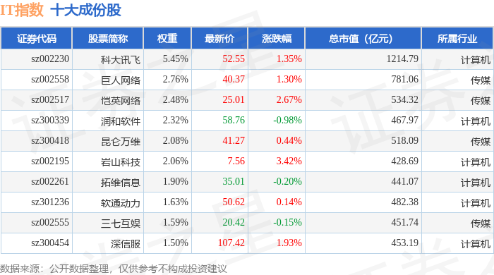 IT指数(399239)十大成份股详情如下: