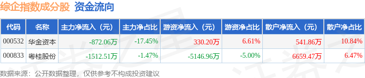 资金流向方面,综企指数(399249)成份股当日主力资金净流出合计2384.57万元,游资资金净流出合计4816.75万元,散户资金净流入合计7201.32万元。成份股资金流向详情见下表: