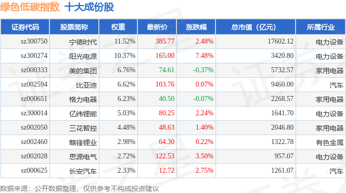 绿色低碳(399258)指数十大成份股详情如下: