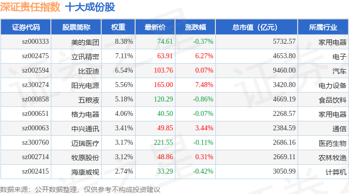 证券之星消息,10月24日,深证责任(399341)指数报收于1687.74点,涨1.06%,成交1101.61亿元,换手率1.41%。当日该指数成份股中,上涨的有49家,深南电路以10.0%的涨幅领涨,下跌的有50家,泸州老窖以4.64%的跌幅领跌。