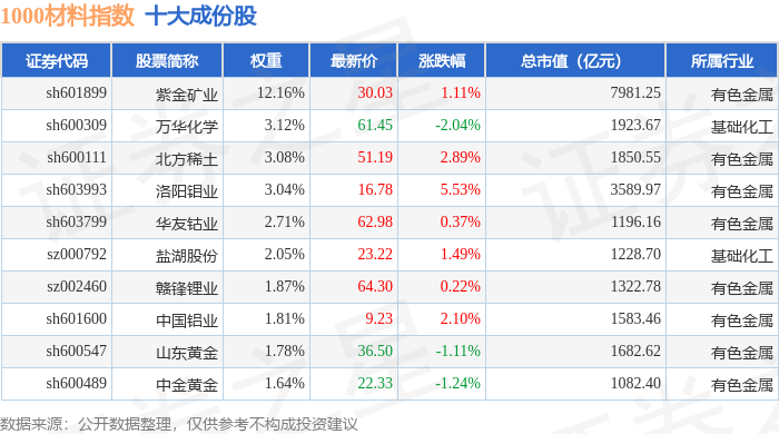 资金流向方面,1000材料(399382)指数成份股当日主力资金净流入合计3.49亿元,游资资金净流出合计1.35亿元,散户资金净流出合计2.14亿元。成份股资金流向详情见下表: